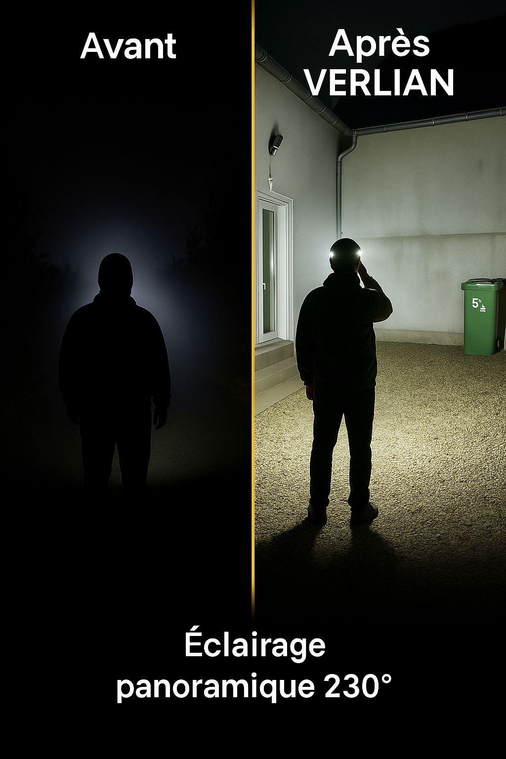 Équipée d’une LED COB ultra large 230°, d’un projecteur longue portée et d’une autonomie allant jusqu’à 8 heures, VERLIAN offre un éclairage puissant et constant.