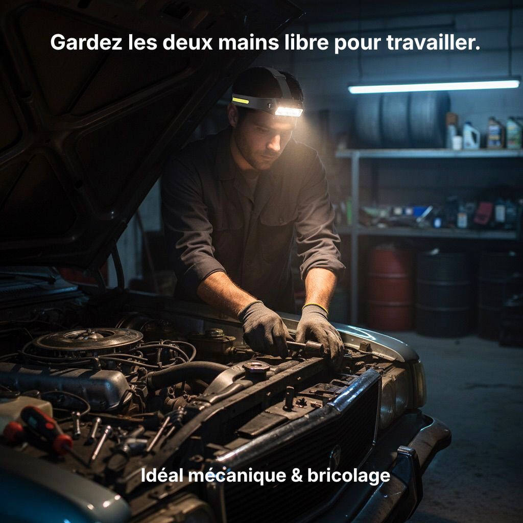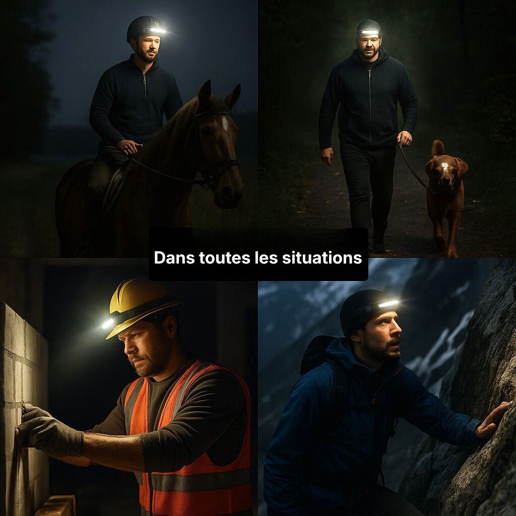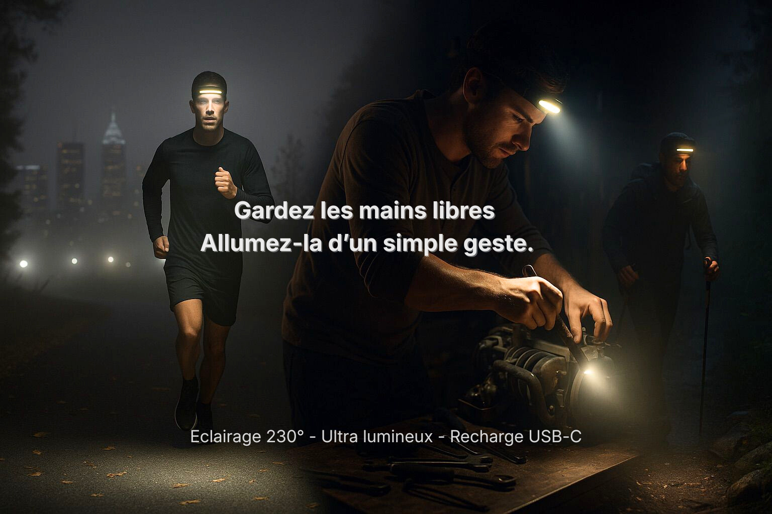 Oui. L’éclairage COB 230° offre une visibilité panoramique, élimine les angles morts et permet de voir ce qui se passe autour de vous — essentiel en running, bricolage, randonnée ou promenade.